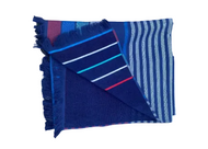 FOUTA BICOLORE RAYÉE - bleu et beige