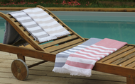 FOUTA BICOLORE RAYÉE - rose et beige