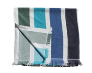 FOUTA BICOLORE RAYÉE - bleu et beige